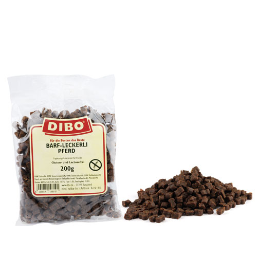 Leckerlis BARF-Pferd bieten wir im 200g-Beutel an.
