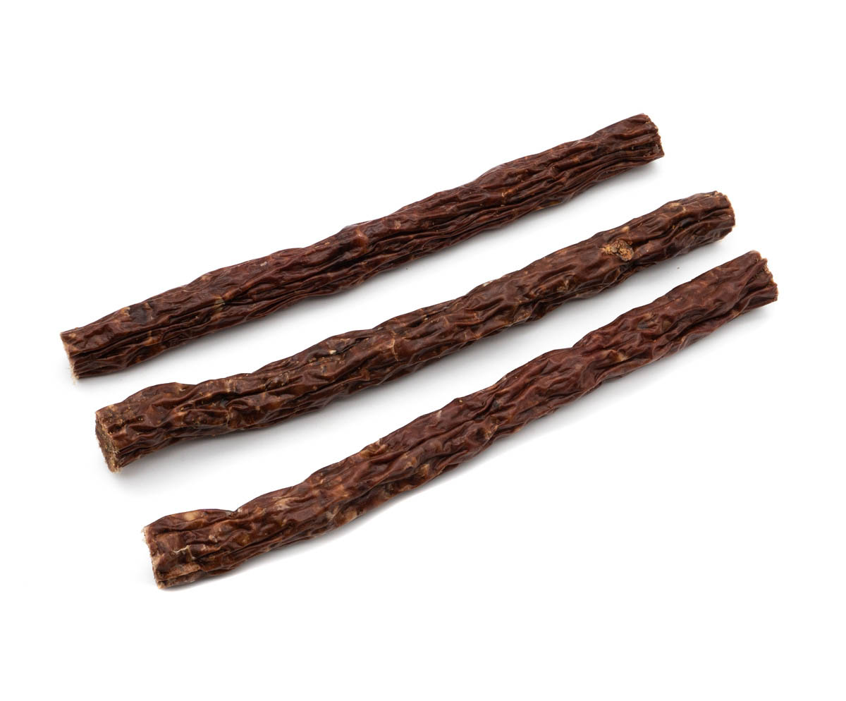 Die in Deutschland produzierten Fleischstangen sind natürlich frei von jeglichen künstlichen Zusätzen wie Konservierungsmitteln oder Geschmacksverstärkern. Durch die schonende Lufttrocknung bleiben die leckeren Aromen erhalten und machen diesen Kausnack für jeden Hund einfach unwiderstehlich.